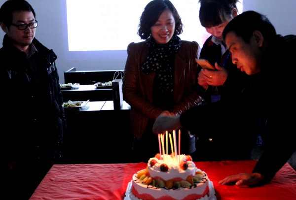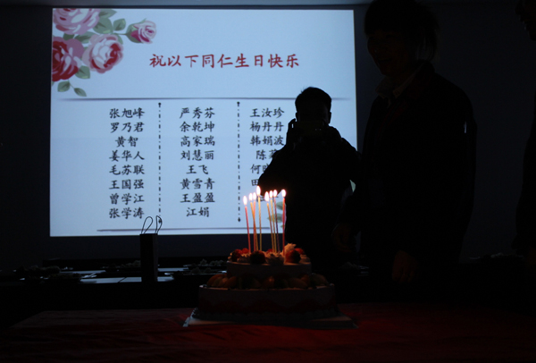 “祝你生日快樂(lè),祝你生日快樂(lè),……”,當(dāng)熟悉的生日歌聲響起的時(shí)候,在眾人熱烈期待的眼神中,壽星代表共同拿起刀叉為大家切分生日蛋糕,頓時(shí),一張張年輕的臉龐在燦爛的燈光下綻開(kāi)了幸福的笑容……